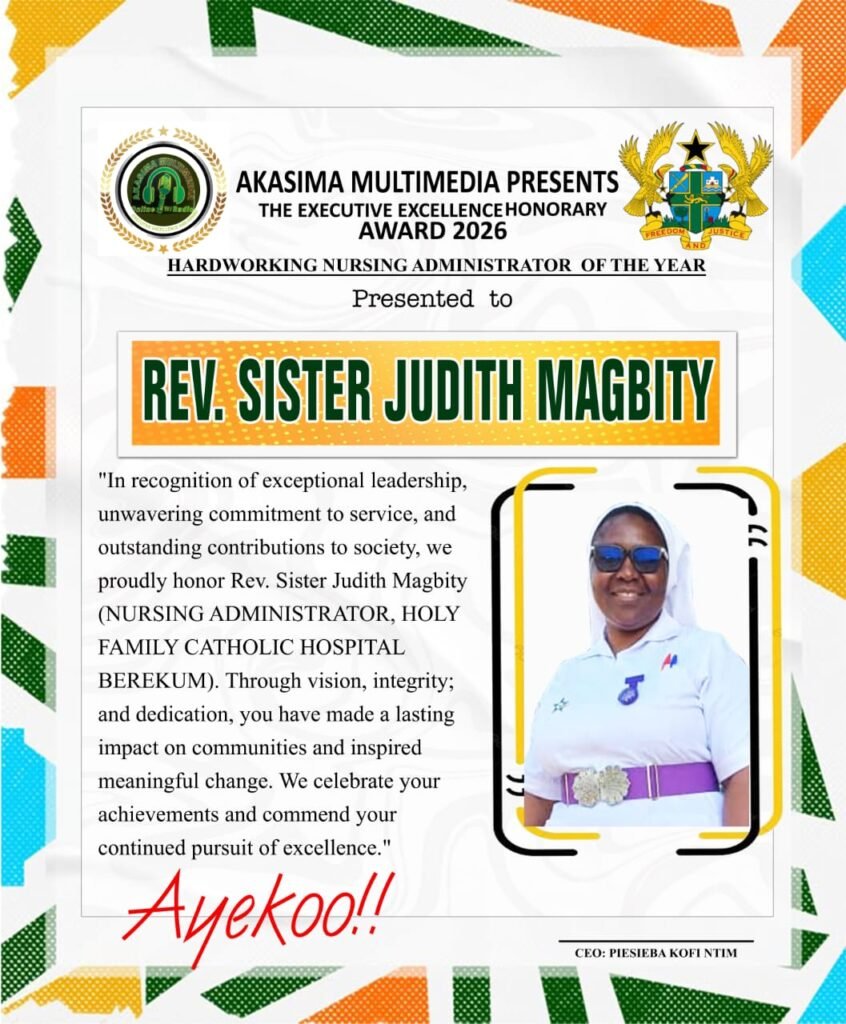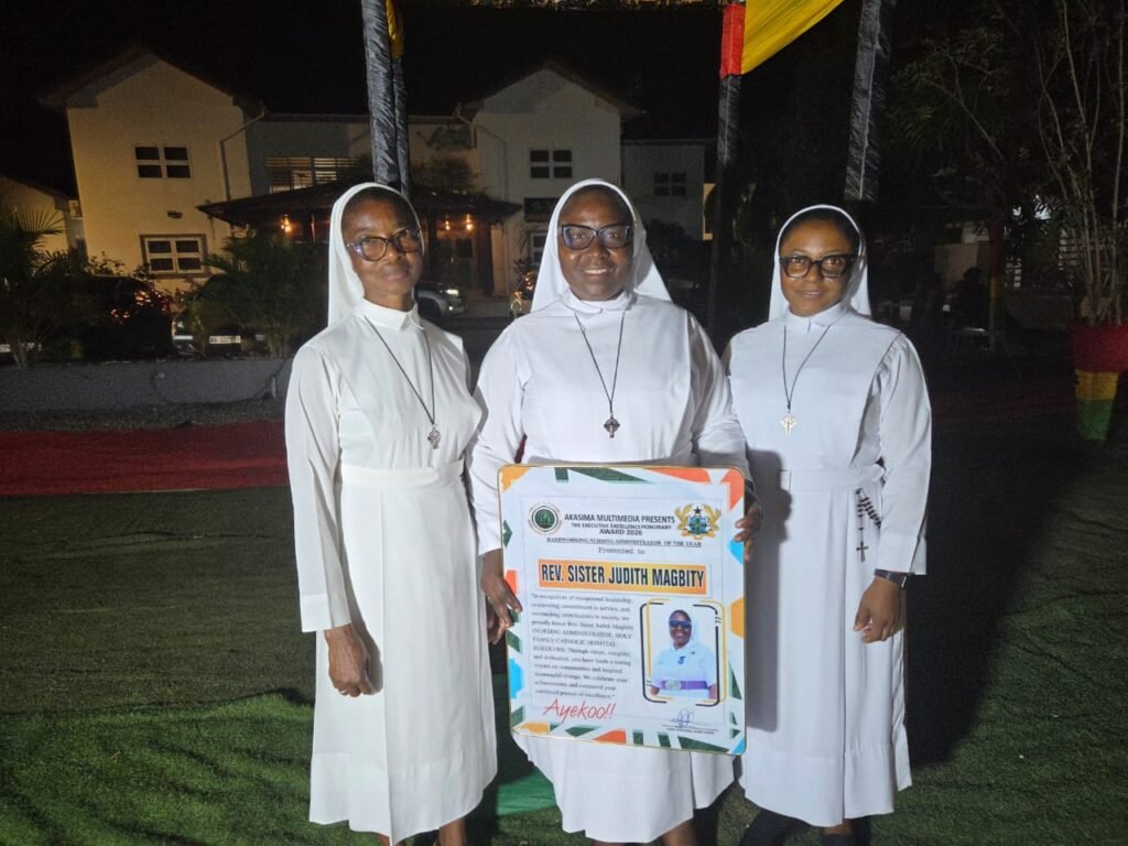 On the evening of March 7, 2026, the Akasima Multimedia Team, presented Sr. Judith Magbity, HHCJ, the Provincial Superior, of the Congregation of the Handmaids of the Holy Child Jesus with an Award of Excellence as a Nursing Administrator at Pomaa Hostel,